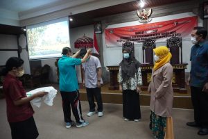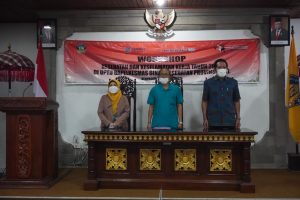 Selanjutnya, sambutan dari penyelenggara diwakilkan oleh Kepala Seksi Pelayanan dan Pelatihan UPTD Bapelkesmas Propinsi Bali Drs I Wayan Terima, M.Pd dalam sambutannya Wayan menyampaikan ucapan terima kasih kepada Fikes UIN Jakarta yang mempercayakan UPTD Bapelkesmas Bali dalam melakukan workshop K3 bagi tenaga laboran. “Selamat datang di Bali” ujar I Wayan. Wayan melanjutkan berdasarkan Permenkes no.252 tahun 2016 bahwa Setiap Fasilitas Pelayanan Kesehatan Wajib terdapat unit K3. “Kesempatan workshop ini sangat berharga bagi semua peserta, dan kami berharap semua peserta dapat mengikuti secara serius dan bertanggungjawab agar mendapat wawasan untuk meningkatkan pelayanan” tutup Wayan. Acara dilanjutkan dengan pembukaan secara resmi kegiatan Workshop K3 dan penyerahan nametag secara simbolis kepada perwakilan peserta.