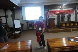Dalam pelatihan tersebut dilakukan simulasi pencegahan kabakaran menggunakan APAR sehingga peserta dapat menggunakan alat pemadam kebakaran dengan tepat dan cepat jika sewaktu-waktu terjadi bencana kebakaran di lingkungan kerja.