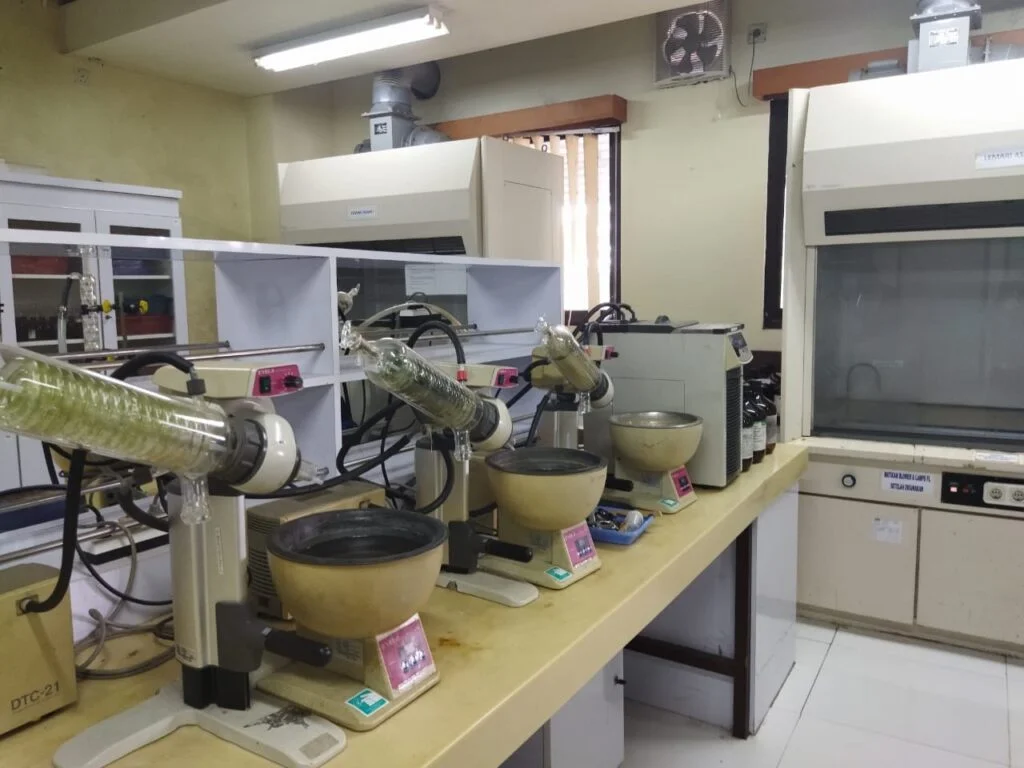 Additionally, the laboratory provides necessary chemicals and glassware for experiments. It serves as a practical space for various student activities, including organic chemistry practicums, raw material analysis, and pharmaceutical preparation analysis.